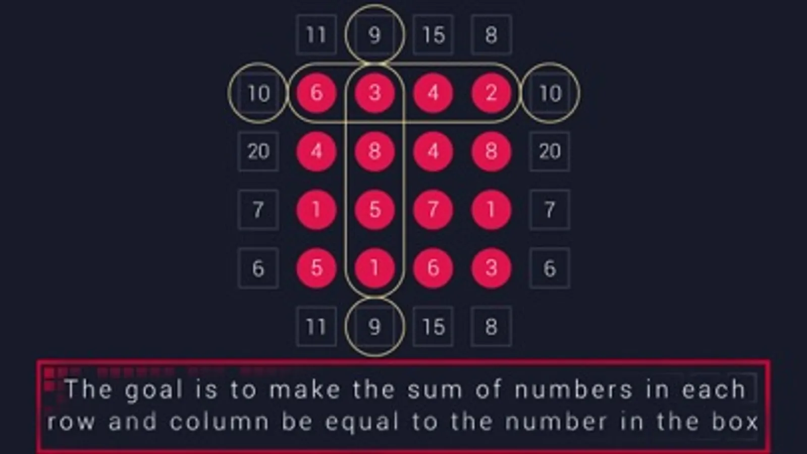 The goal is to make the sum of numbers in each row and column be equal to the number in the box.