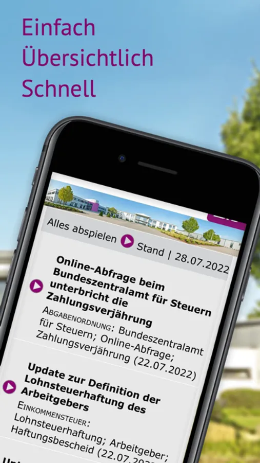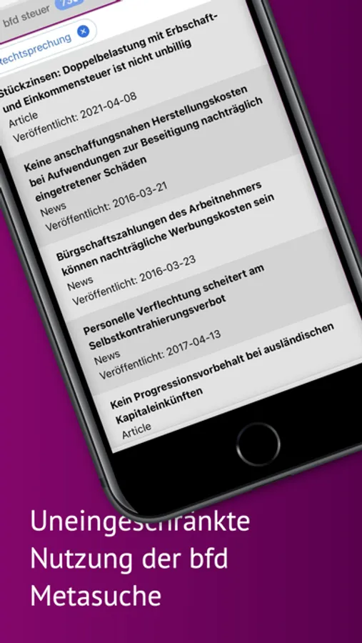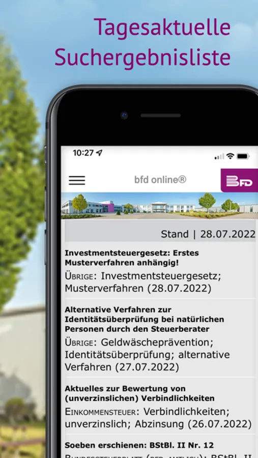 - Immer up-to-date mit aktuellen Fachbeiträgen via Push-Notification: erhalten Sie jeden Tag die aktuellsten Gesetzesänderungen und Urteile direkt auf Ihren Startbildschirm.