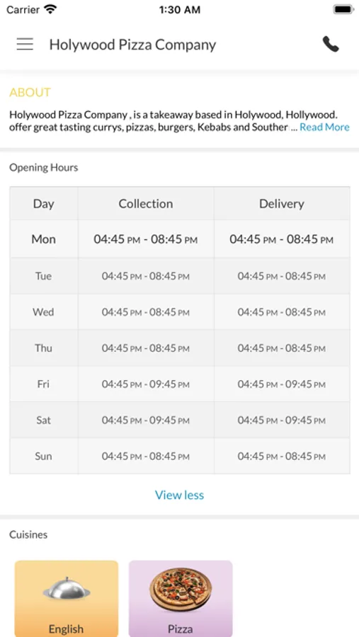 Welcome to Holywood Pizza Co Online menu and ordering website.Our new website allows you to look through our menu and order your pizzas online.You also have the option to pay for your order online or when your order is delivered to your home, or before collection at our shop.Here at Holywood Pizza we are constantly striving to improve our service to you our customers.We hope that by allowing you the option of ordering and paying online it makes your shopping experience more enjoyable and hassle free.From time to time we will reward our online customers with exclusive online offers.Please feel free to phone the shop with any queries that you may have.