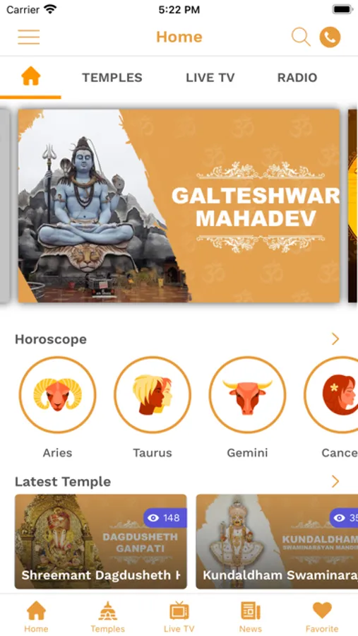 The devotees can enjoy LIVE Aarti & Darshan of famous temples i.e. Isckon LIVE Darshan, Ambaji LIVE Darshan, Goga Maharaj LIVE Darshan & more.