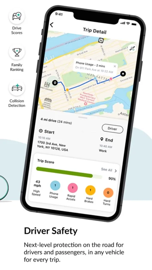 • Add an element of competition while encouraging safer driving with personal driver scores for each family member.