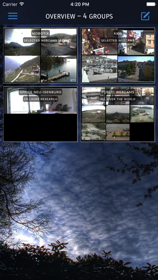 Choose a group that will be shown in the today widget besides your daily information. That way your most important cameras are only a swipe away.