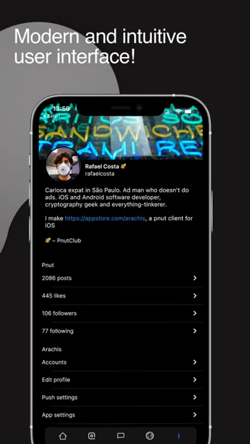 With Arachis, you can publish GIFs (either from GIPHY* or record one yourself), add images via pnut Files, and much more.