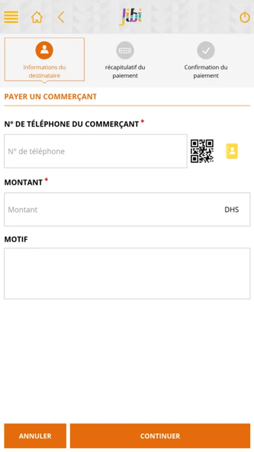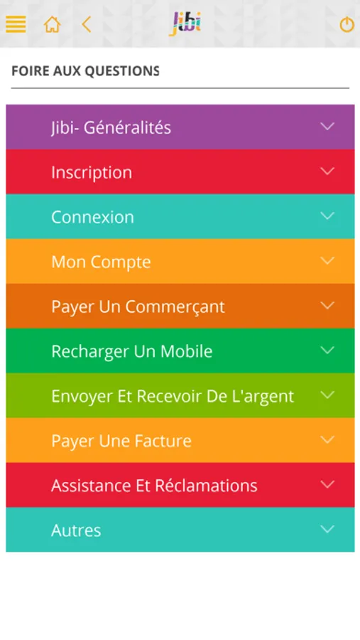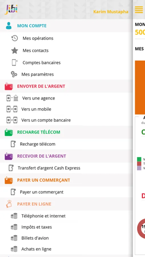 - Envoi d’argent vers un autre compte de paiement mobile Jibi ;