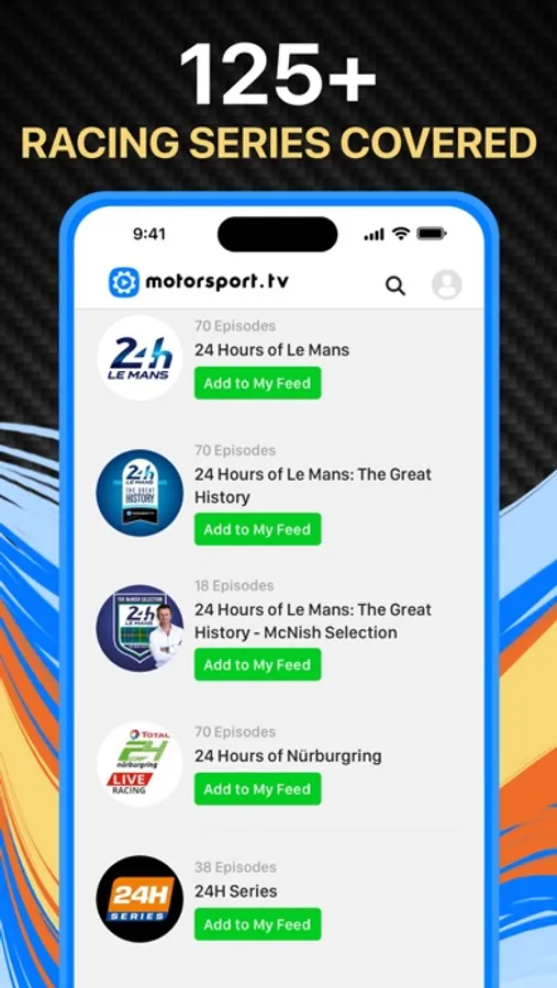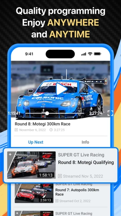 • Live racing and on demand library for SUPER GT, Super Formula, ELMS, all World GT Series, Ferrari Challenge, TCR, 24 Hours of Nürburgring, FIA Karting, Formula Regional European Series, Dakar, and many more.