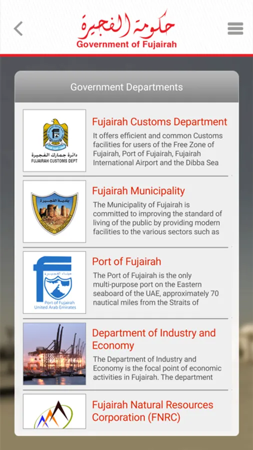 ‘Fujairah’ the Mobile App of the Government of Fujairah provides information on a wide variety of topics and issues associated with the Emirate of Fujairah, in a concise manner.