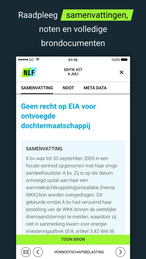 Onder hoofdredactie van prof.dr. Peter Kavelaars volgen en becommentariëren meer dan 100 gerenommeerde fiscale professionals de relevante jurisprudentie, besluiten en wet en regelgeving. U heeft toegang tot de laatste edities van het wekelijkse verschijnende NLFiscaal als ook tot het archief met de eerder verschenen nummers en specials. U navigeert met speels gemak van samenvatting naar noot en van noot naar volledige bronteksten.