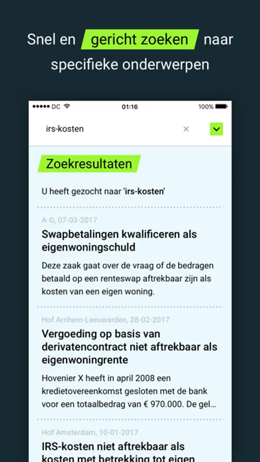Met de uitgebreide zoekfunctie doorzoekt u de database met ruim 20 jaar historie.