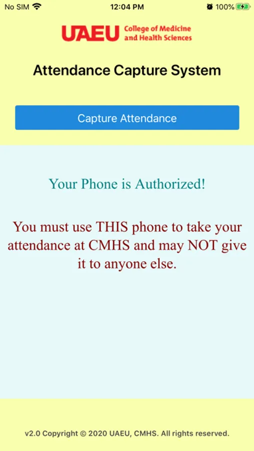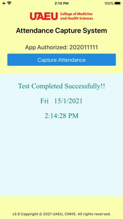 - This app allows students at UAEU, CMHS to submit their attendance at a particular session by pointing the phone camera at a specially created QR code displayed on the board in that session room.