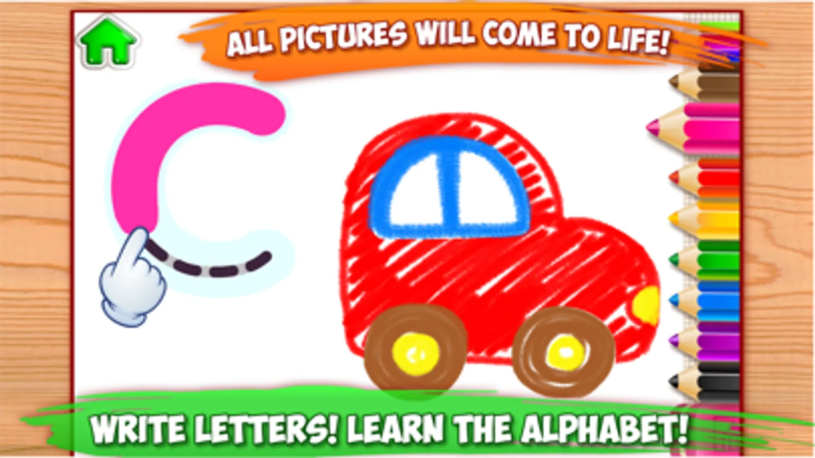 While playing the unique learning game "Draw Letters!", your child will easy learn to recognise the entire alphabet, write letters and – of course – to draw! All while having tons of fun!