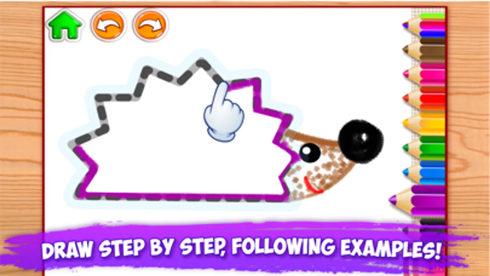 In this game your kid will draw cool figures and characters following hints given by a motivating child´s voice. Once your child draws a letter the drawing magically comes to life! The bee buzzes busily, the hedgehog turns somersaults, while the funny giraffe begins to dance...