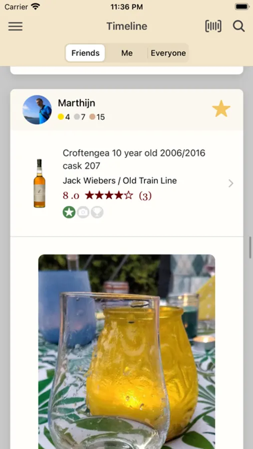 - See all your friends whisky experiences on your personal timeline