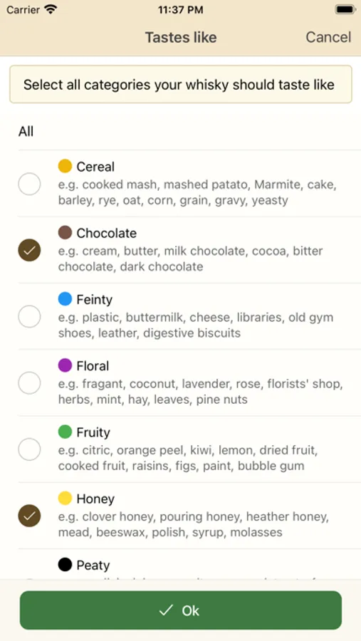 - Search whiskies by taste