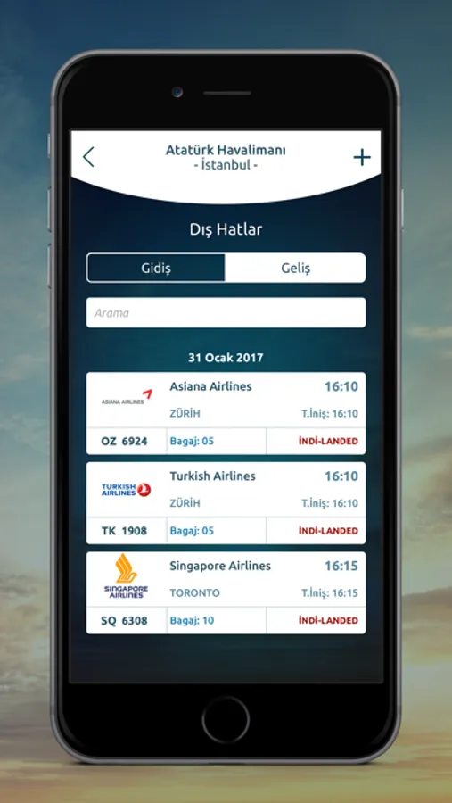 Airline Flight Information mobile application Airline flight information, flight time, gate number, baggage number in Turkey instantly on your iPhone. You can search in-flight information, find out from which band your luggage will be picked up, and instantly view the latest status, landing and departure information, delay, and timeliness information on your screen.