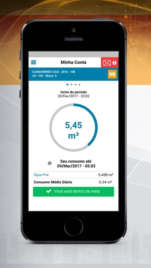 Configure o recebimento de informações diárias sobre o consumo com a previsão de fechamento de fatura em R$ e m³.