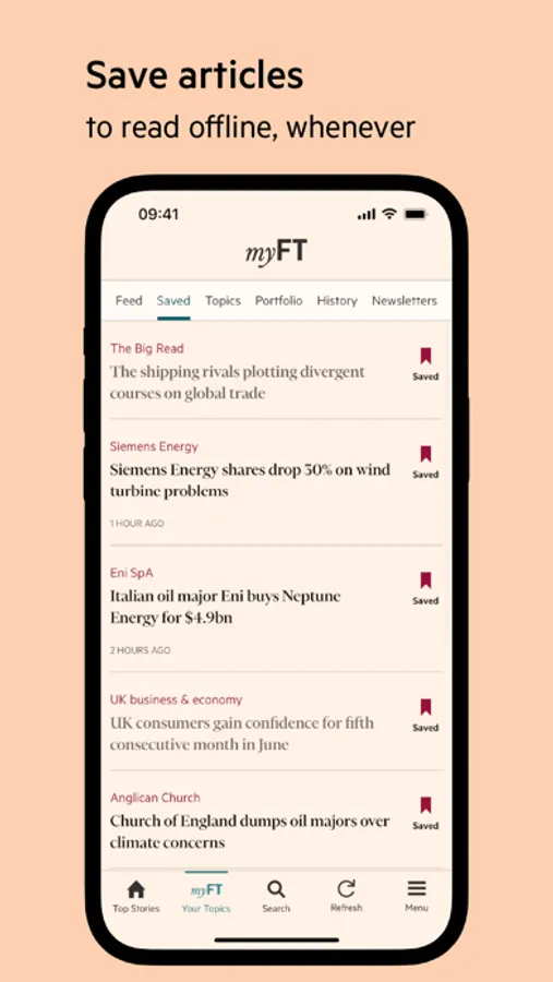 • Save articles to read later, even when you're offline