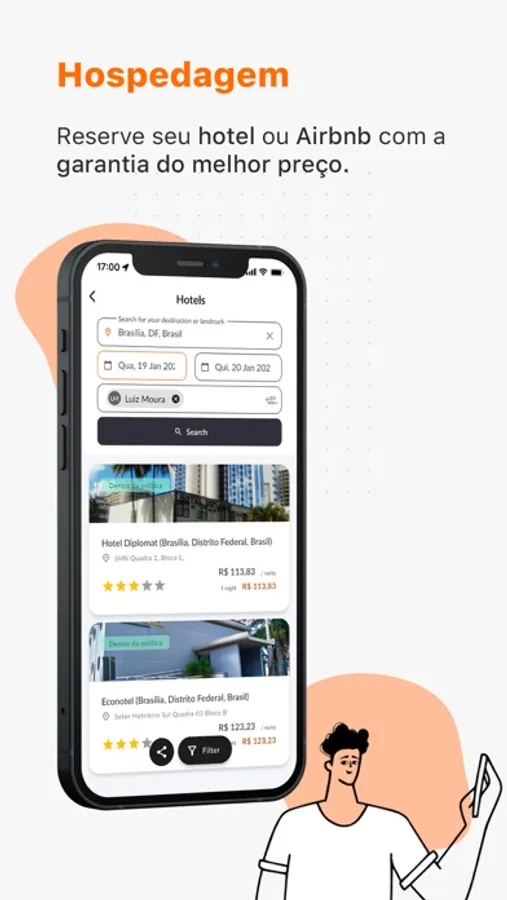Garantimos o menor preço! Compare vários sites para reservar o mesmo quarto de hotel, pelo menor valor. Escolha a melhor opção de hospedagem de acordo com seu perfil, filtrando pela quantidade de diárias e faixa de valores, numa pesquisa otimizada com a política de viagens da sua empresa.