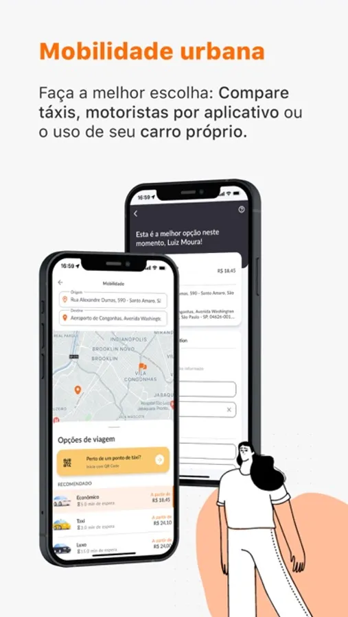 Escolha sua modalidade de transporte desejada, de acordo com a sua preferência. Seja motorista por aplicativo ou táxi, você terá acesso às melhores ofertas com o melhor custo benefício, sem precisar consultar vários apps. Você ainda pode usar seu carro próprio e o pedido de reembolso é encaminhado diretamente para a sua empresa.
