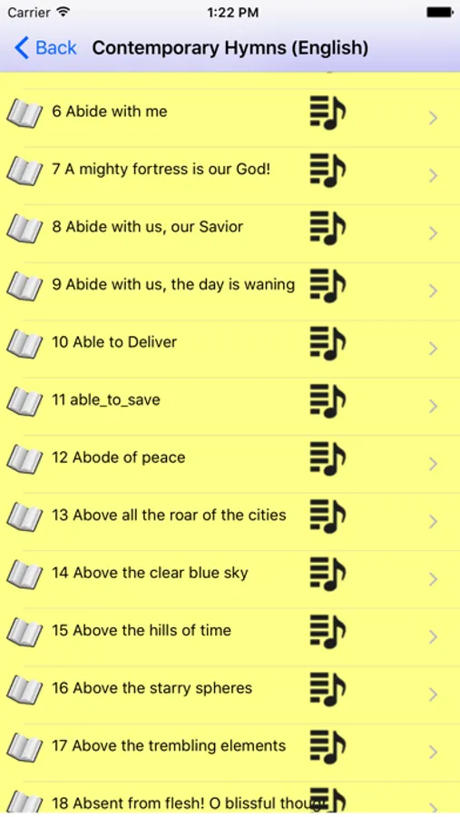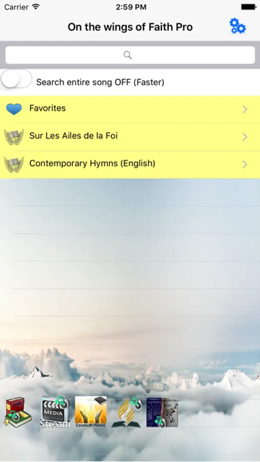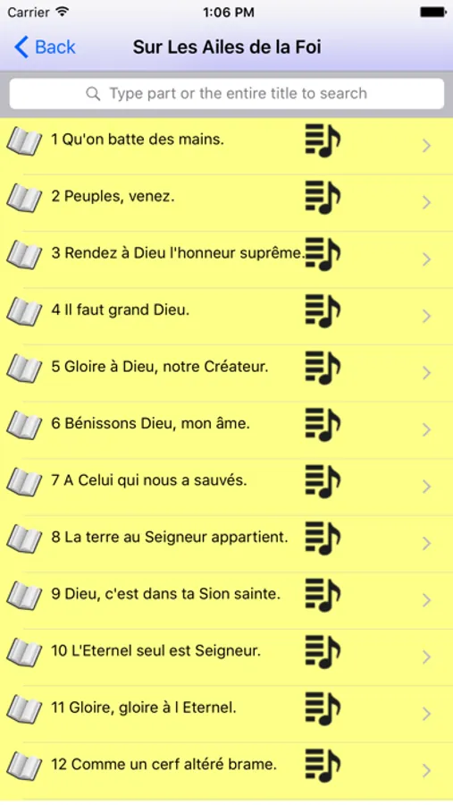 The popular Christian hymn book (Sur les Ailes de la Foi ) is now available at the tip of your hand with this App. All the Hymns lyrics, music are now at your reach. Worship the Lord with all the beautiful hymns of On The Wings of Faith. Each Christian should install this App to enhance their worship service. An extra Hymn book (Contemporary Hymns) is included in the App. Download, Install and Enjoy.