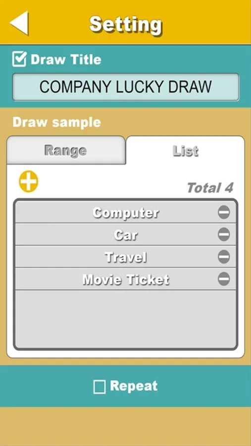 And also set the title of lucky draw, and whether to repeat the winning and other options.