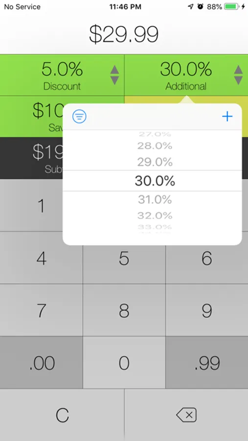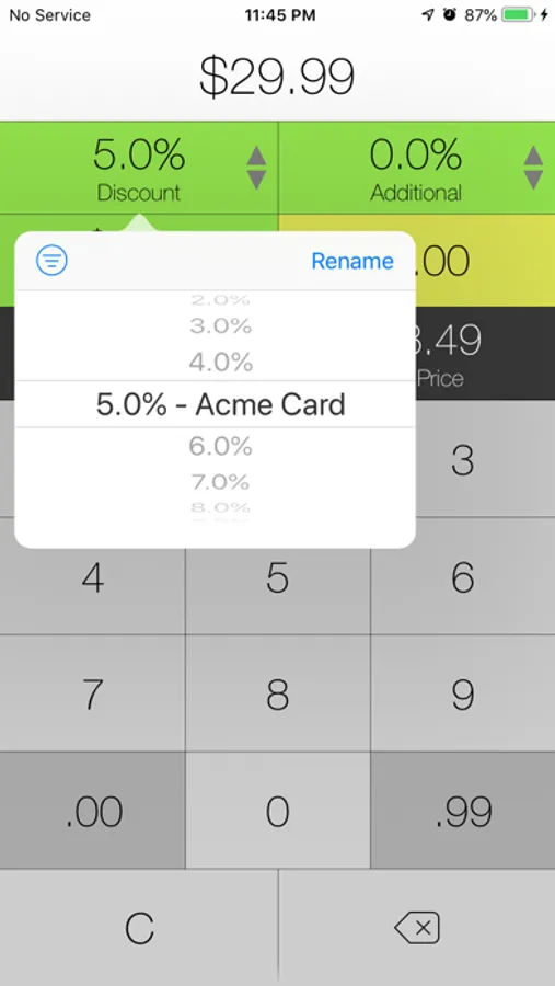 - Named percentages make it easy to find and choose commonly used sale percentages, or discounts provided by store cards.