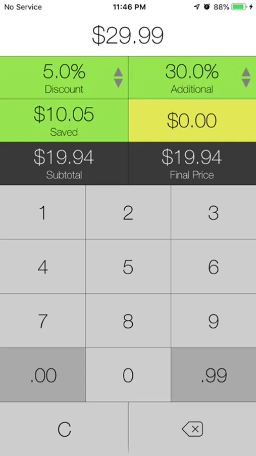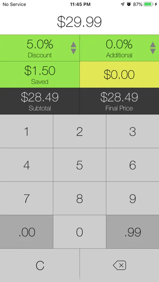 - Easy interface shows how much was saved with discounts, amount of sales tax, and final purchase price.