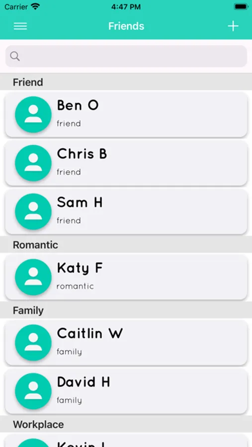 - Sort relationships into 4 unique categories : friend, romantic, colleague, family