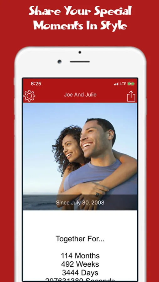 The app will show you the number of months, weeks, days, seconds, and even heartbeats that you and your partner have been together.