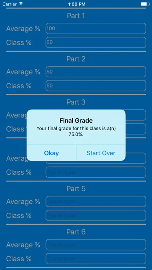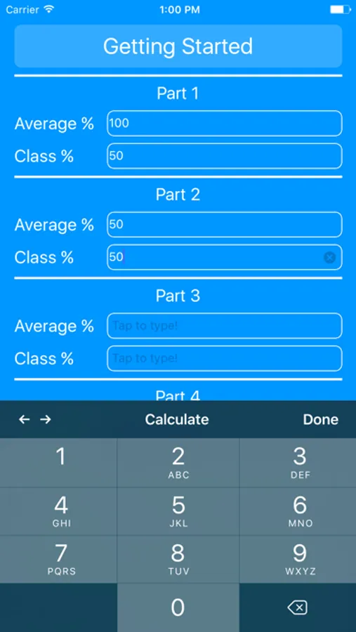 - You input averages of grades and how much each grade part is worth as a whole 100%