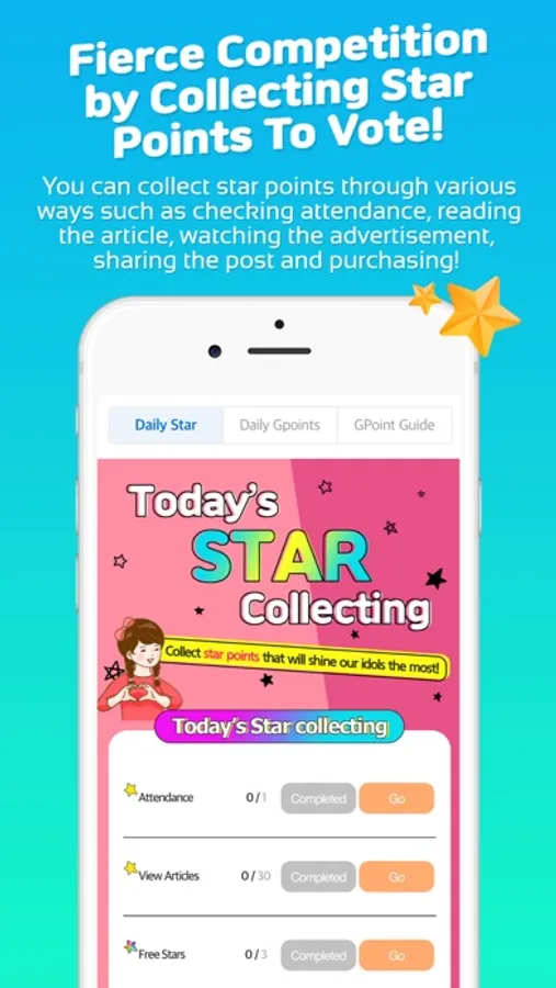 Free Points can be collected through Attendance Checks, View Articles, Watch Advertisement, Share, etc.