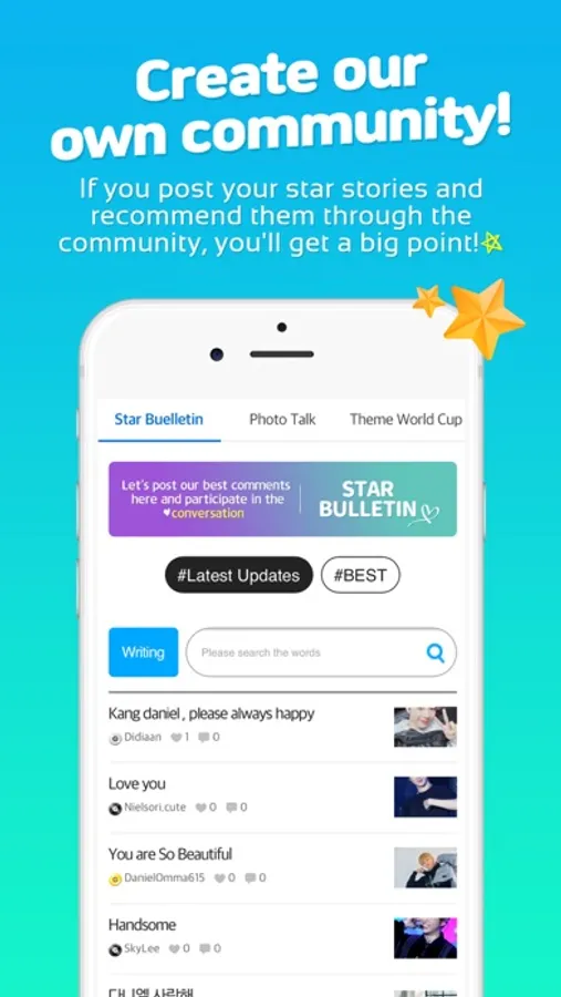 3) There are channels for each star so users can share the stars’ information as much as wanted.
