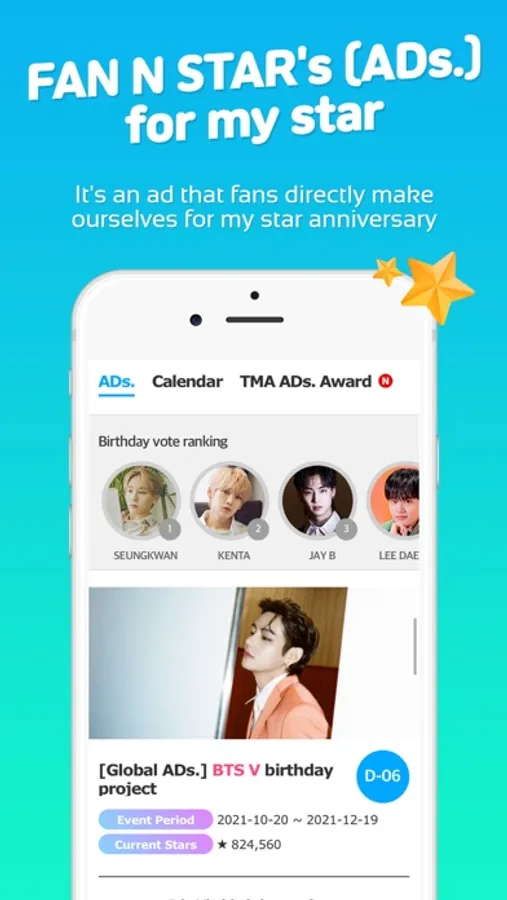 7) Real Time notification for my idol’s ranking movement, event notification, and star customized contents’ availability.