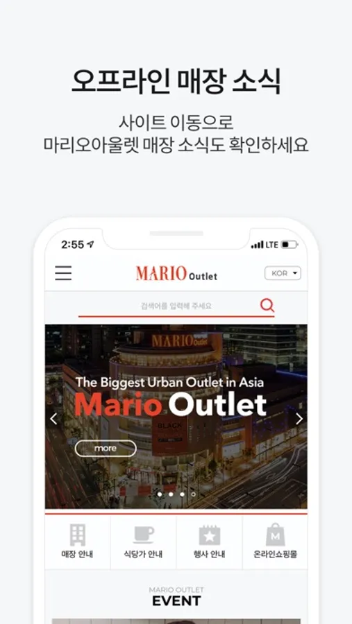 마리오아울렛의 모든 행사와 서비스는 물론 온라인 쇼핑 마리오몰의 특별한 혜택을 누리실 수 있도록 다 더한 마리오몰/마리오아울렛의 온오프 통합 APP입니다.