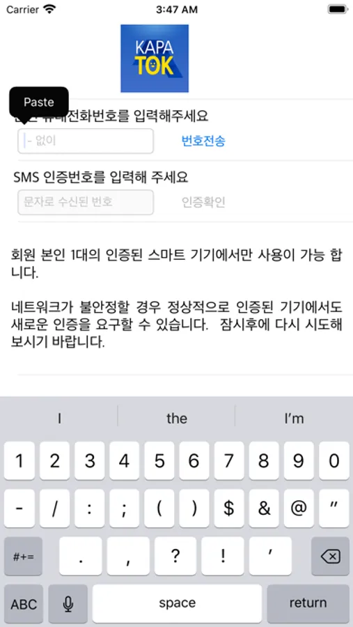- 애플PUSH사용하며 우리 협회에 미리 등록된 전화번호로만 사용이 가능합니다.