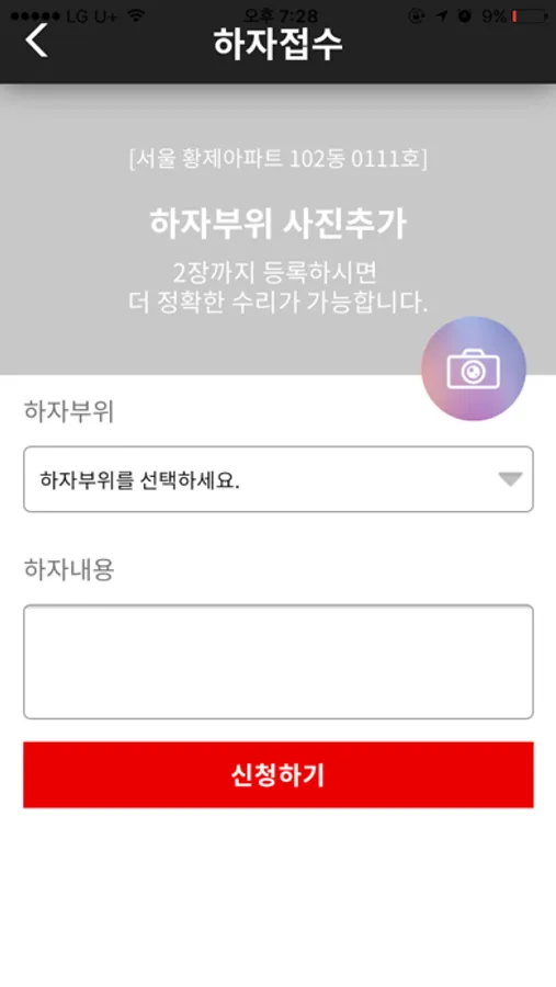 스마트폰 기능을 활용하여 누구나 쉽게 사진한장만으로도 하자접수가