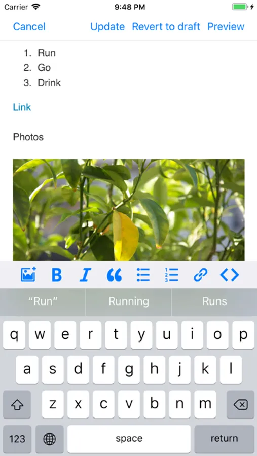 * Embed an image from the gallery, or, by taking a picture directly from the app