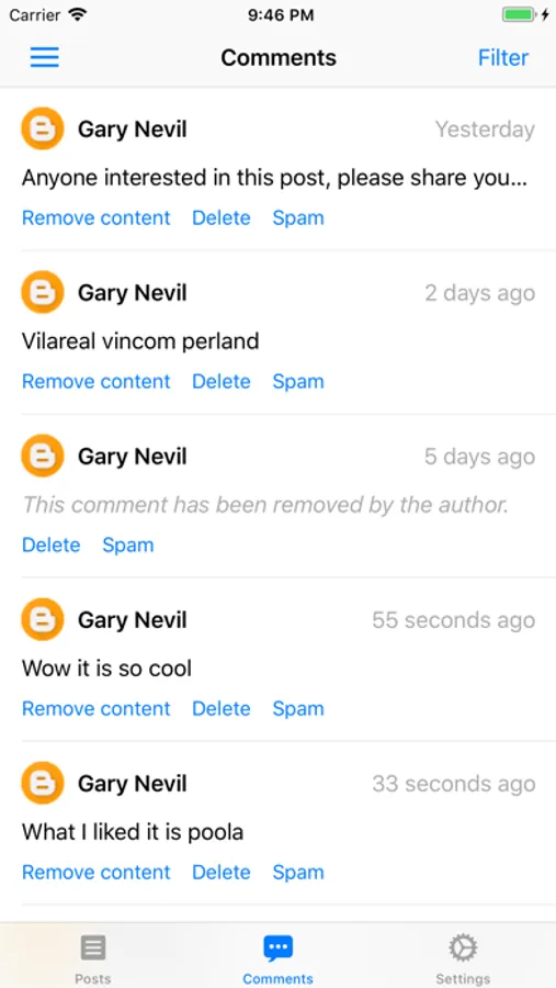 * This app does not provide content. By conforming to Blogger API Services Terms of Service, this app allows users to manage their blog posts.