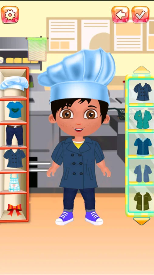 اعمال ينجزها الاب او الام في البيت ، مثل اشعال الغاز ، تصليح الاسلاك ، تزيين الكعكة ، تحضير البيتزا ، تنظيف المطبخ ، فكل هذه الاعمال تستحوذ اهتمامه كطفل ، فمن خلال هذا التطبيق يمكنه تجريب الاعمال بنفسه بدون تعرضه للخطر فهي تبقى مجرد لعبة يقوم بتقليد الكبار من خلالها والاهم من ذلك بعد مرور المراحل سيأتي الوقت ليستعد للاحتفال كفائز ، فيقوم بتحضير نفسه من خلال ارتداء ملابس ملائمه وجميله وانيقه والاهم من ذلك انها من اختياره هو ، هذا ما يساعده كشخص مستقل مستقبلاً