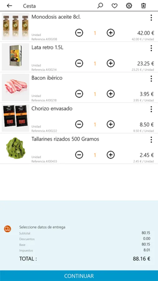 A través de nuestro buscador de productos y categorías, podrá acceder a nuestras listas de resultados, tres distintas según su forma de comprar, reposición, lista detalle o lista resultados. Seleccione desde la página de resultados o desde la página de histórico de compra las cantidades que desee y configure su carrito de compra. Aprovéchense de los descuentos indicados, las promociones o los cupones descuentos vigentes para ahorrar. Indique sus datos de envío, seleccione el método de pago y su pedido estará listo para que el almacén se lo envíe y usted lo reciba en la fecha indicada de entrega.