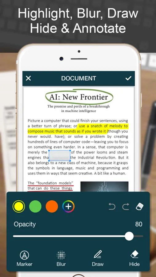 - Hide unwanted/confidential parts of the document with color and blur effects.