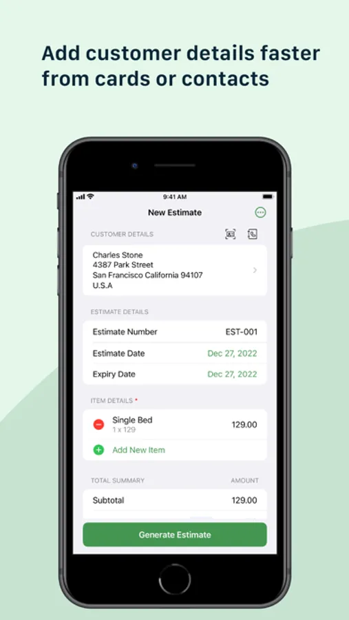 Made a deal and need to create an estimate immediately? Generate estimates instantly while on the go, for free. Fill in the estimate, select print or download as PDF. No sign up required. It's hassle-free and absolutely free.