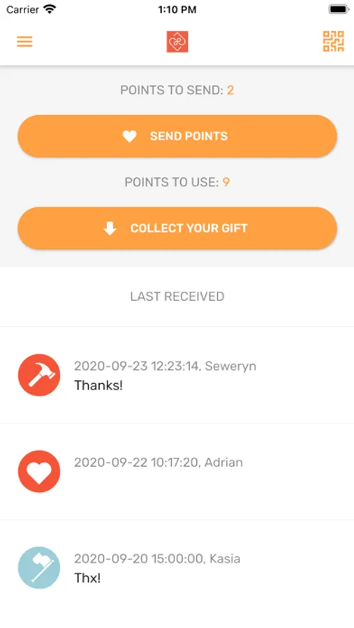 - push notifications informing of new given point,