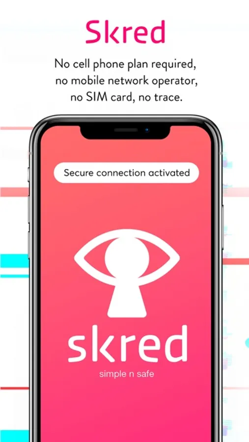Skred is free, without subscription, without a provider, without a SIM card, and without leaving a trace.