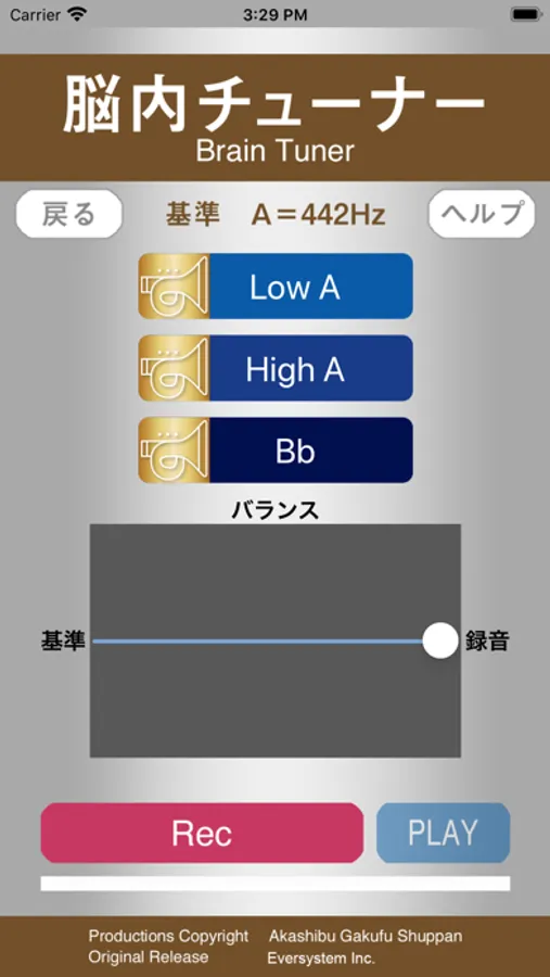 チューナーの基準の音は、楽器の音色を使用。楽器特有の基準音が選択可能(それぞれ3つ)です。録音機能を使って、自分の音程を客観的にチェック。チュートリアルを元に、チューニングが音楽に直結する仕組みが理解できます。