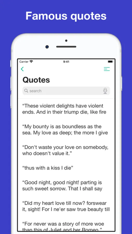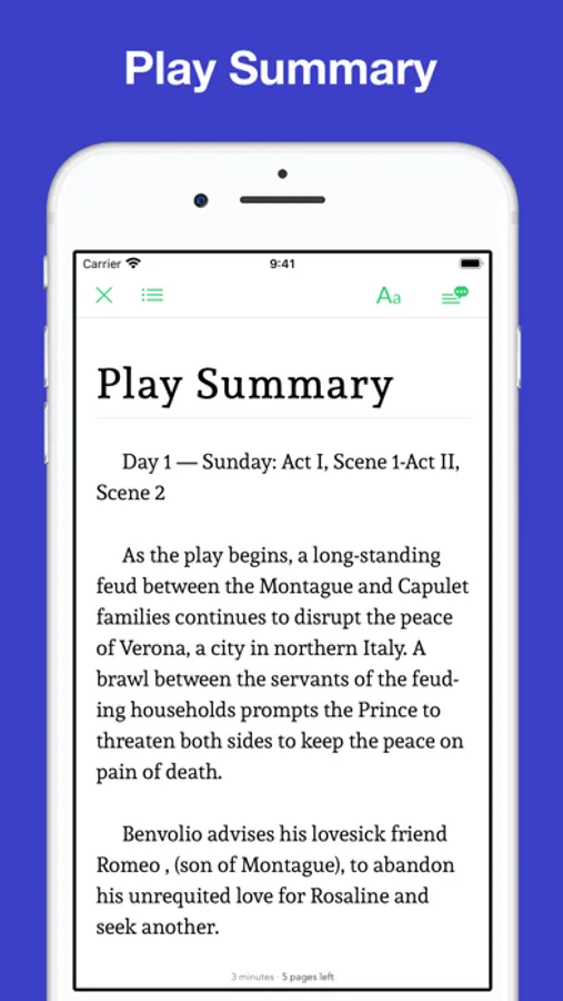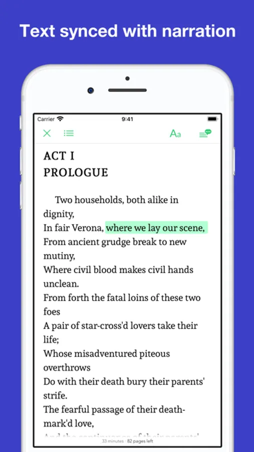 This app combines the play "Romeo and Juliet" by Shakespeare with professional narration enabling read along feature, a professional narration synchronized with the highlighted text.