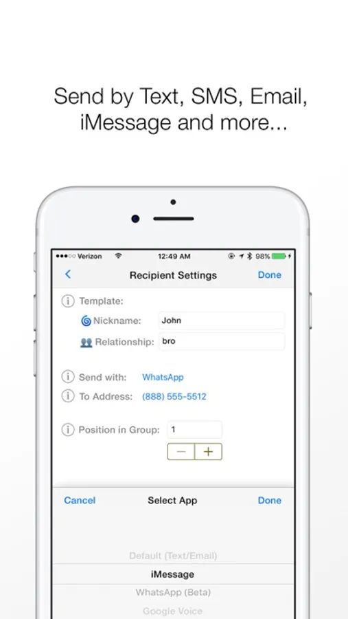 3. Send via Text, SMS, iMessage, WhatsApp, Email, and more!
