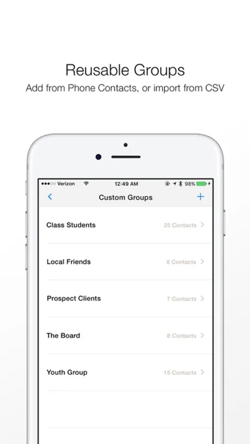 Messaging with Reach is always better because the app ensures none of the recipients see other recipients in the groups. Create groups based on personal contacts, professional contacts, and more and keep them organized with Reach. Improve workflow productivity by creating reusable recipient groups, and easily blast personalized texts and email messages.