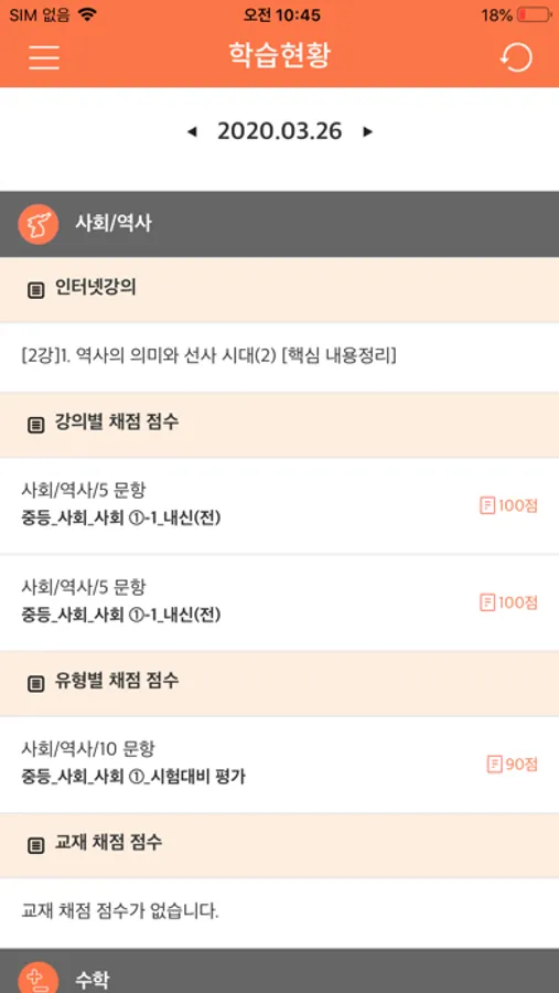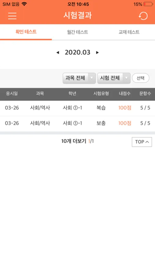 - 시험정보 : 시험 유형별 점수 확인