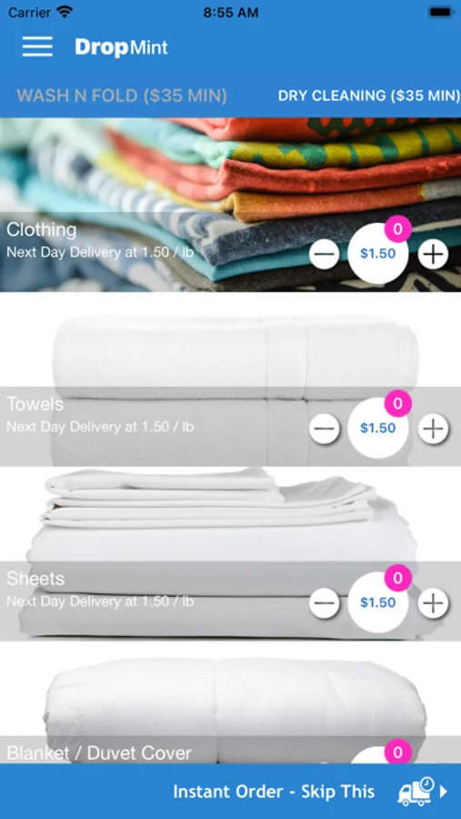 Use the DropMint app to schedule a convenient pickup and delivery at a time and place that works best for you