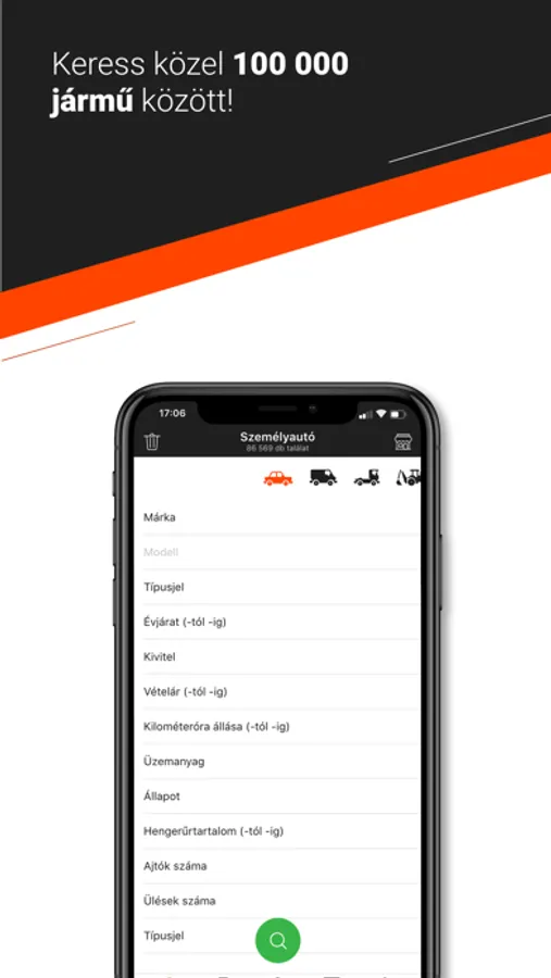 Legyen szó akár személyautóról, haszongépjárműről, motorról, motorcsónakról, vagy pótkocsiról, alkalmazásunkkal könnyedén megtalálhatod, amire éppen szükséged van.